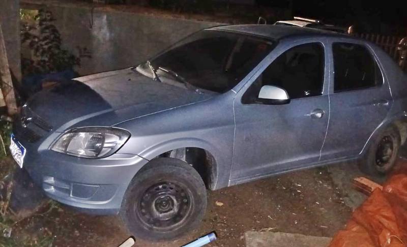 A PM chegou até o paradeiro do carro após receber informações de que um veículo suspeito havia entrado em uma residência na Rua Juscelino Kubitschek, no bairro Cohab II, em Papanduva. Ao perceberem a movimentação na rua, os ocupantes da casa tentaram ocultar o Prisma cobrindo-o com uma lona e um cobertor.