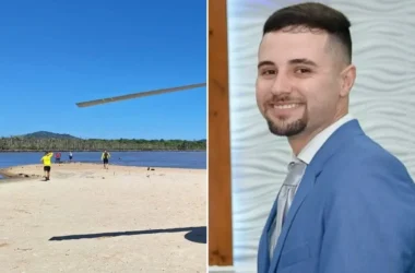 Vítima chegou a ser retirada da água uma vez, mas retornou à arrebentação e submergiu; buscas com motos aquáticas e apoio aéreo do Arcanjo ocorrem neste domingo (15).