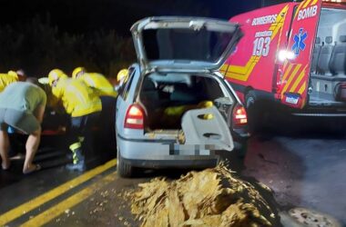 Vítima foi atingida por fragmentos do equipamento no pescoço e clavícula; Bombeiros realizaram atendimento por quadro de hipotensão antes de encaminhamento ao hospital.