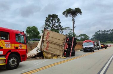 TRÂNSITO Condutora 76 anos e passageiro ficam feridos após carro tombar no interior de Porto União